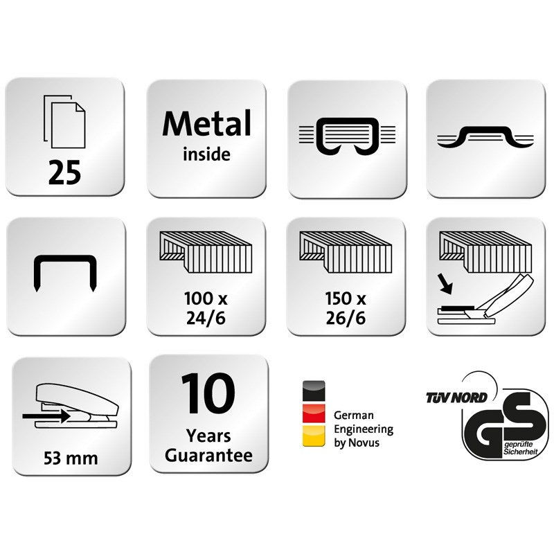 Uključuje 200 spajalica tipa 24/6 DIN SUPER