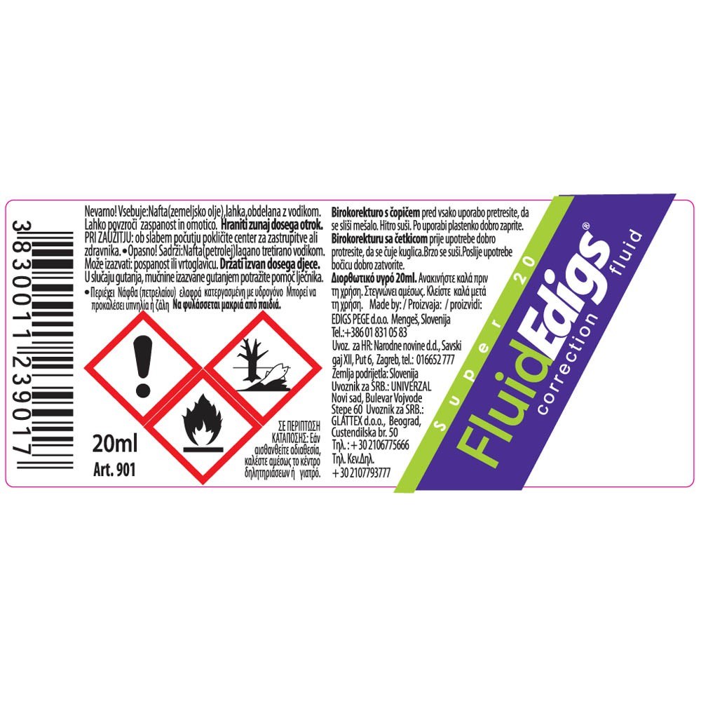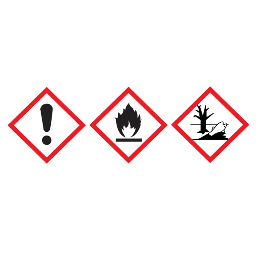 Oznake obavijesti: čuvati izvan dohvata djece, čuvati odvojeno od topline, vrućih površina, iskri i ostalih izvora paljenja; u slučaju zdravstvenih tegoba izazvanih gutanjem nazvati liječnika