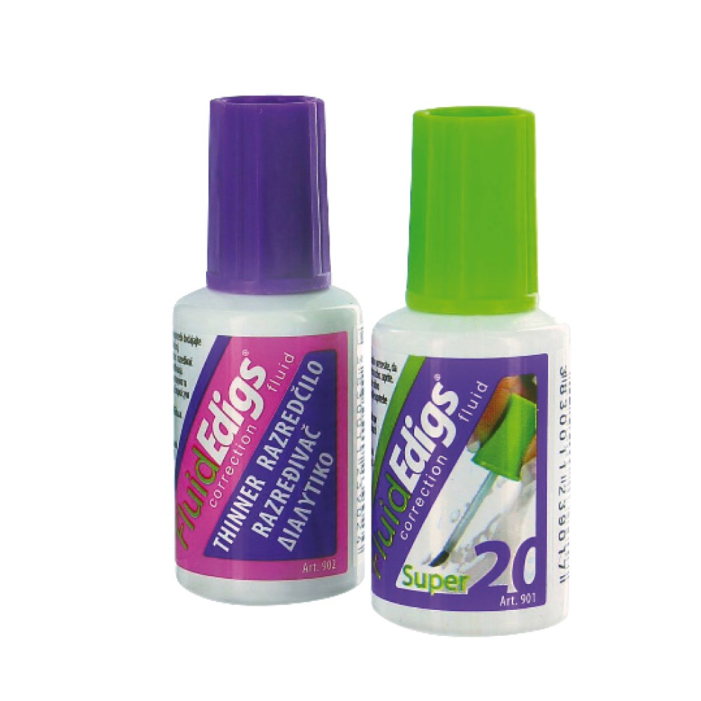 Eko korekturni set sastavljen od tekućeg korekturnog sredstva i tekućine za razrjeđivanje korekture. 20 ml po bočici.