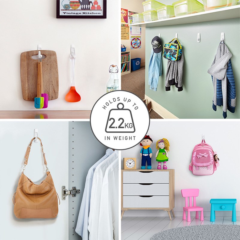 Inovativno rješenje za sigurno i bez oštećenja vješanje težih predmeta poput kaputa, povodaca za pse, ručnika i mnogih drugih kućanskih predmeta. Čvrsto drži i čisto se uklanja pomoću 3M tehnologije rastezanja i otpuštanja.