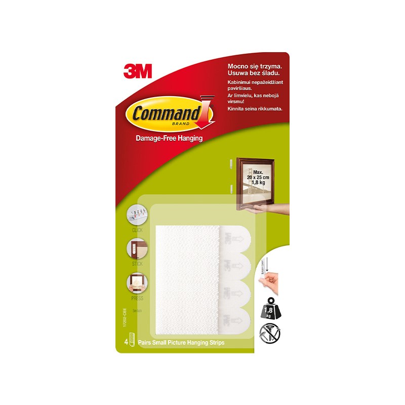 Command™ trake za vješanje slika su samoljepljive i jednostavne za postavljanje. Objesite okvire za slike, zidne umjetnine, mala ogledala, zidne satove, znakove, ploče za suho brisanje i ostale kućne ukrase bez čavala, vijaka i alata.