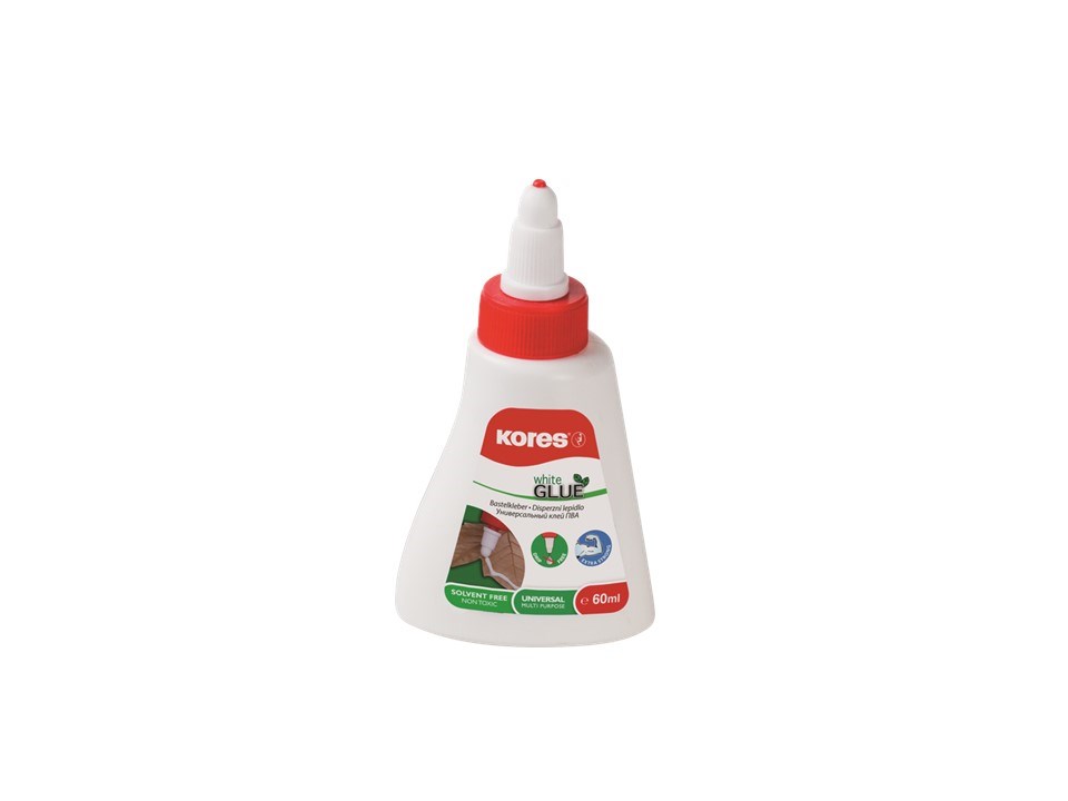 Tekuće, bijelo ljepilo. Bez otapala. Dozirajuća kapica za precizno nanošenje. Za razne vrste papira, tekstil, kožu, drvo.