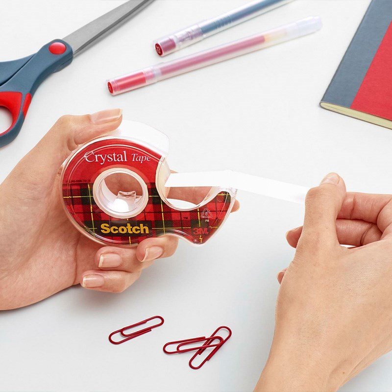 Kristalno prozirna ljepljiva traka na ručnom dispenzeru za izvrsno ljepljenje na glatnim površinama. Akrilno ljepilo, dugo trajanje bez požučivanja. Lako uklanjanje bez tragova. Glatko se izvlači iz role i lako se reže.