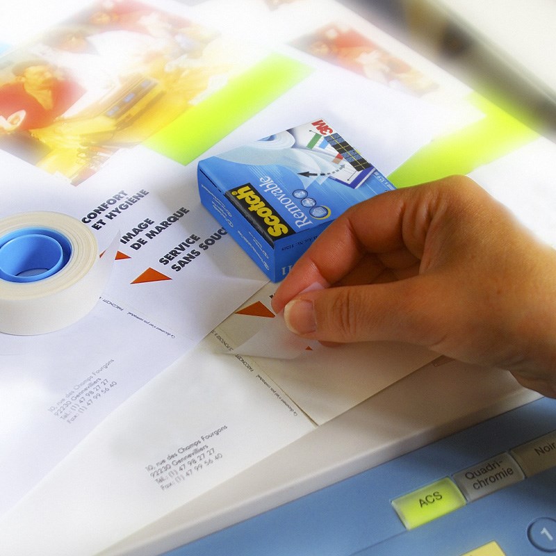 Ljepiva traka pogodna za privremeno ljepljenje i spajanje papira (npr. prilikom fotokopiranja gdje je traka nevidljiva), lako odstranjiva bez oštećivanja papira i ostavljanja tragova ljepila. Kida se rukama, Ne žuti s vremenom.