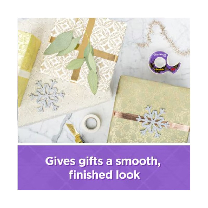 Scotch® Gift-Wrap Satin ima jedinstvenu satensku završnu obradu koja postaje nevidljiva na većini omotnih ukrasnih papira.