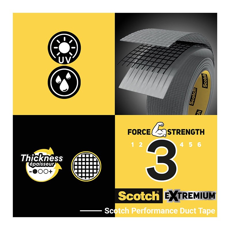 Scotch® Universal Duct Tape je jaka, višenamjenska ljepljiva traka koja brzo i pouzdano prianja, što je čini pogodnom za širok raspon svakodnevnih popravaka i projekata. Po njoj se može pisati gotovo svim markerima i lako se kida rukom.