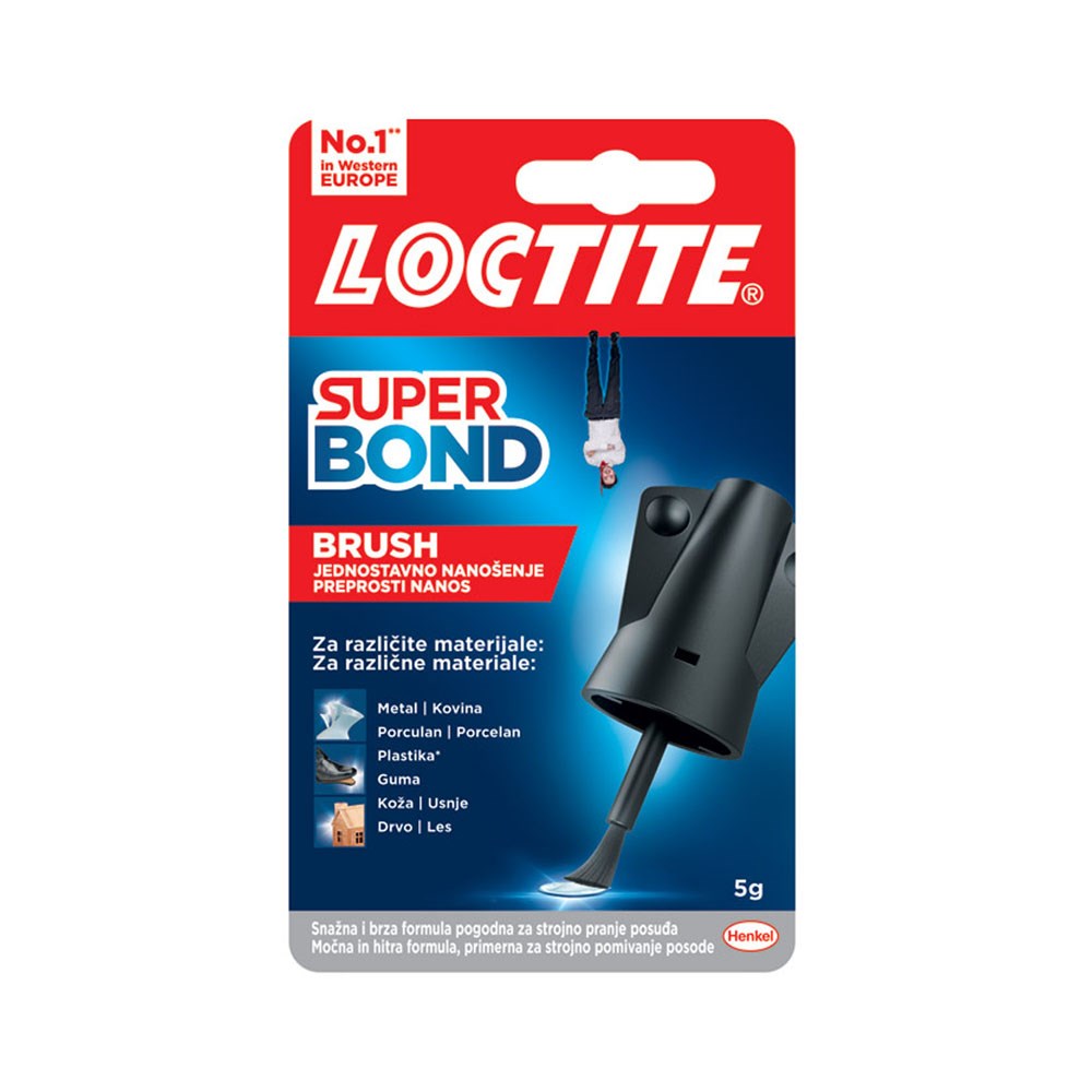 Trenutno ljepilo idealno za gotovo sve vrste materijala (metal, porculan, plastika, guma, koža, drvo). Vodootporno, ne sadrži otapala. Bočica s četkicom za nanošenje koja sprečava curenje ljepila i ravnomjerno nanošenje.