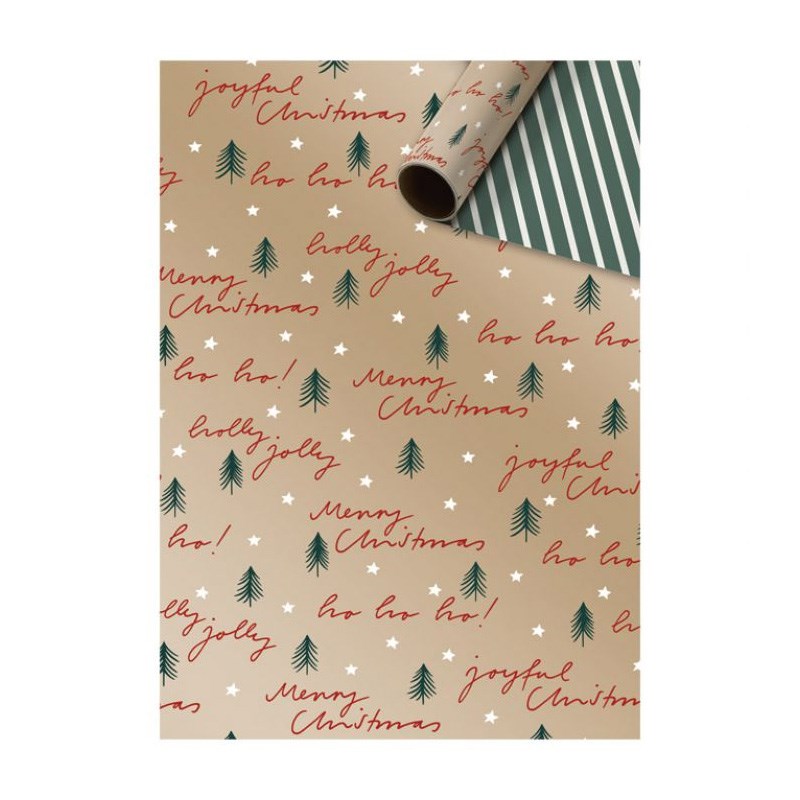 Ukrasni papir za zamatanje, novogodišnji, obostrani. 80 g/m², dimenzija 70x20cm.