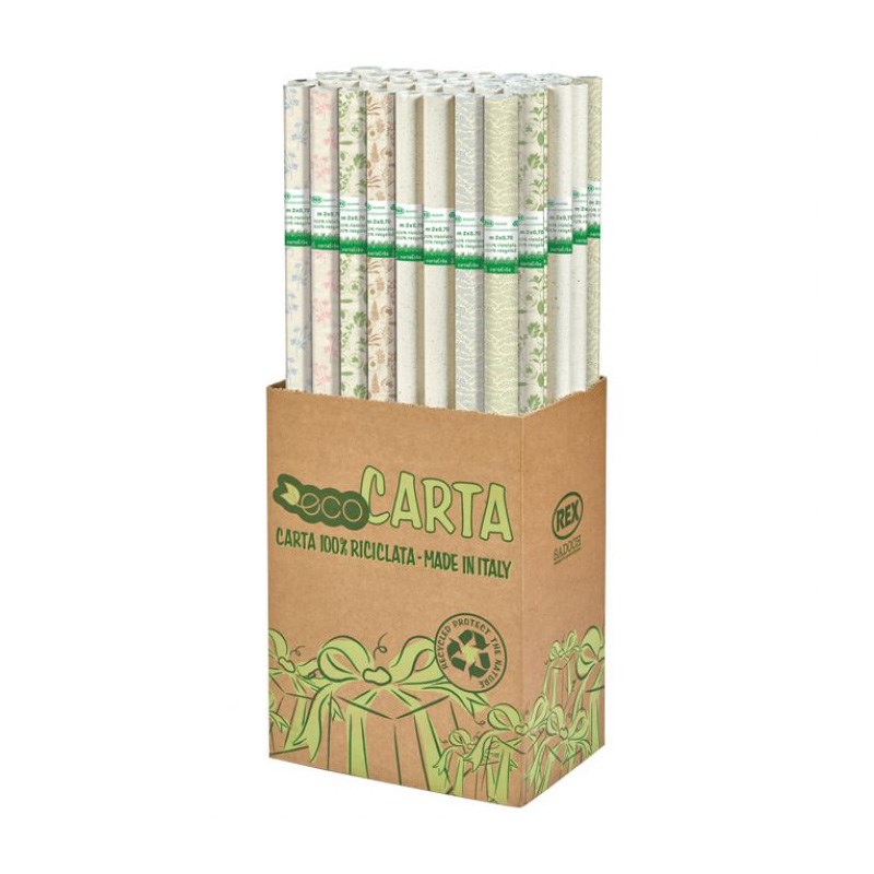 Reciklirani bijeli kraft papir (25% vlakana osušene trave, 75% reciklirani papir.
