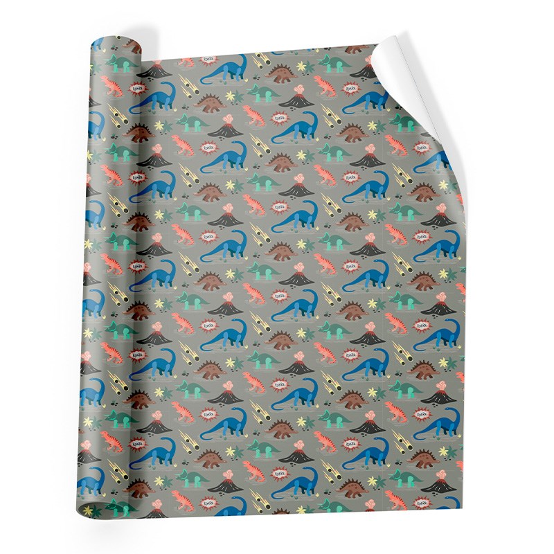 Ukrasni papir za zamatanje i dekoraciju. Papir 80 gr. Motivi dinosaura. 2 arka u roli.