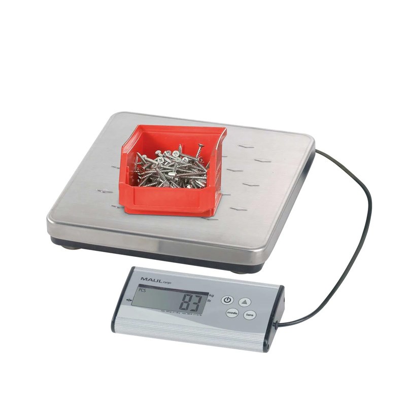 Vaga za pekete do 50kg. Kućište lakirani čelik, platforma od nehrđajućeg čelika s protukliznim izbočinama. Slobodno pozicioniranje upravljačke ploče na stolu ili zidu kablom 2,2m.
