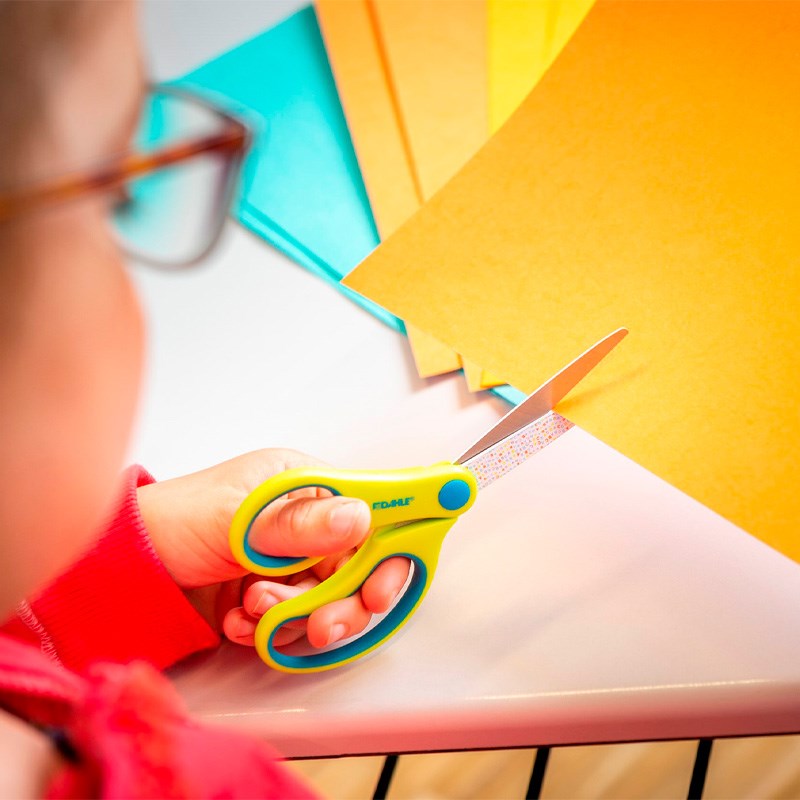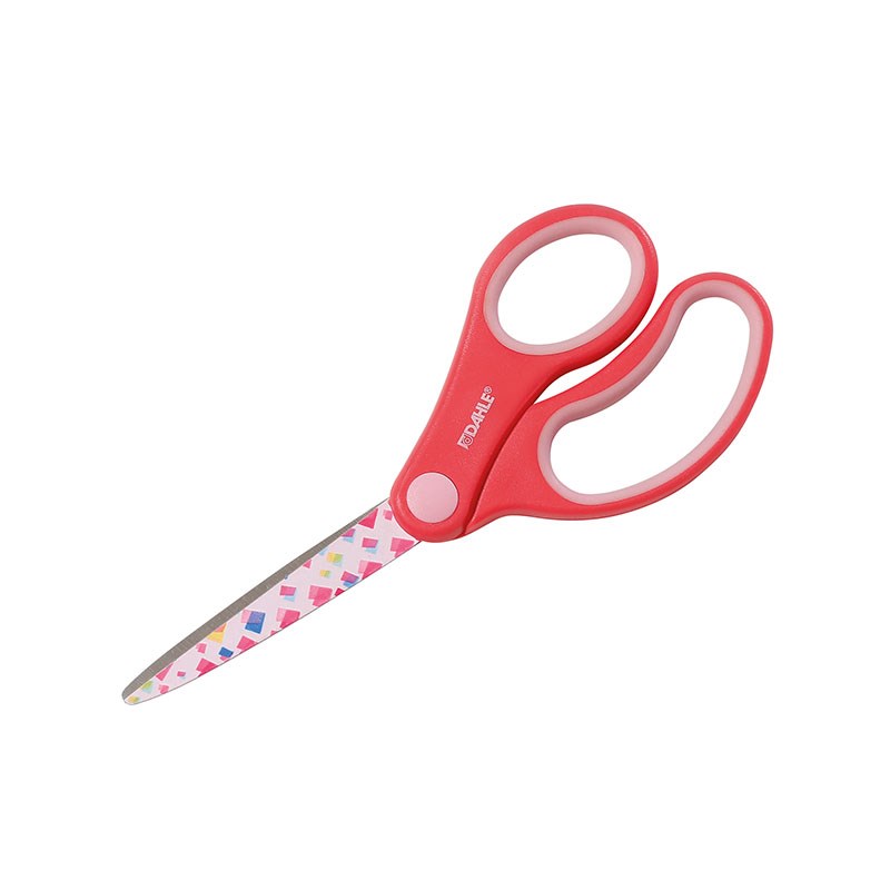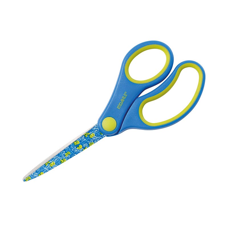Škare za djecu sa šarenim motivima na oštricama koje će se svidjeti djeci. Nehrđajući, posebno kaljeni čelik. Ručke meke na dodir obložene gumom za stalnu udobnost tijekom rezanja.