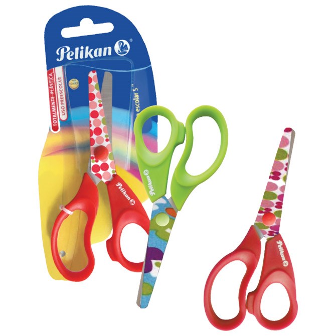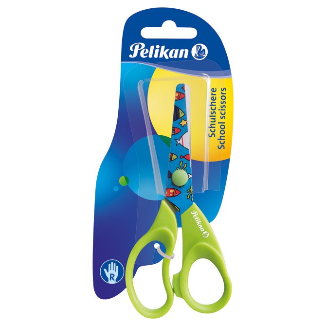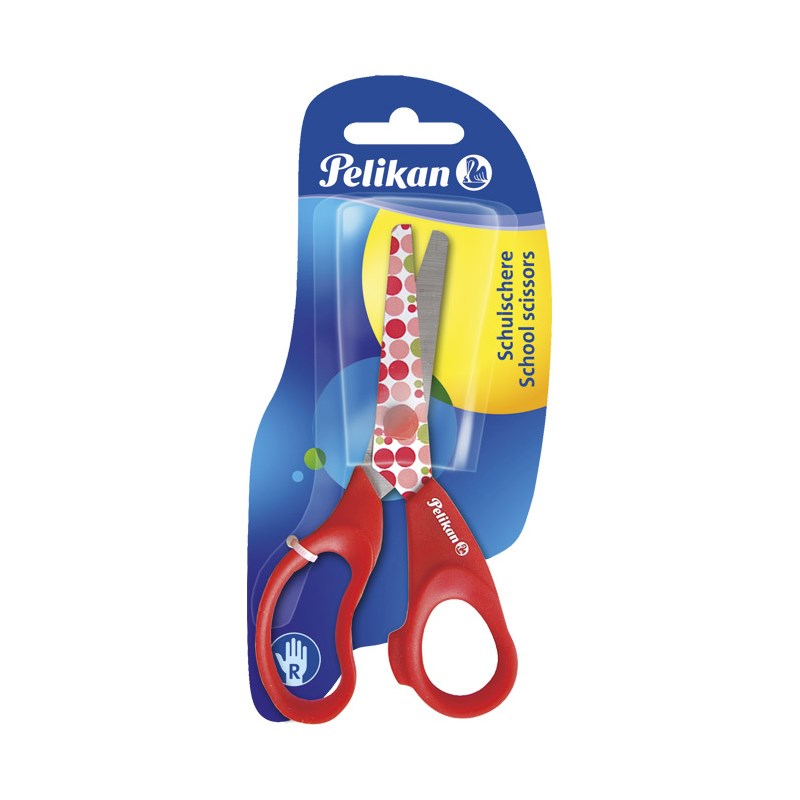 Školske škare od kvalitetnog nehrđajućeg čelika, oblog vrha i ergonomski oblikovanom drškom. Duljina 13 cm. Dvije boje, sortirano.