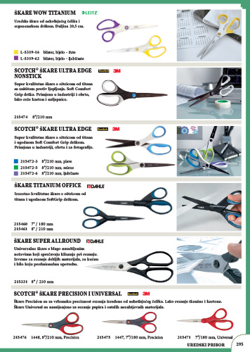 Superkvalitetne škare s oštricom od titana i zaštitom protiv ljepljenja. Soft Comfort Grip drška. Primjena u industriji i obrtu, lako reže karton i naljepnice. Doživotno jamstvo.