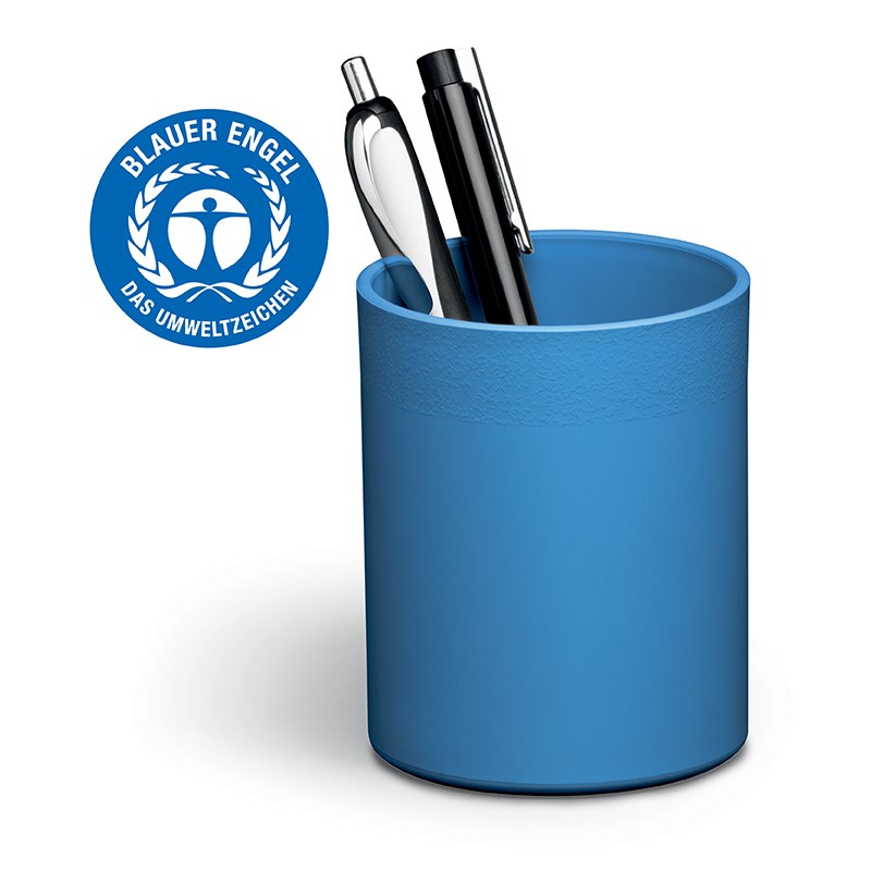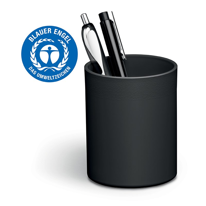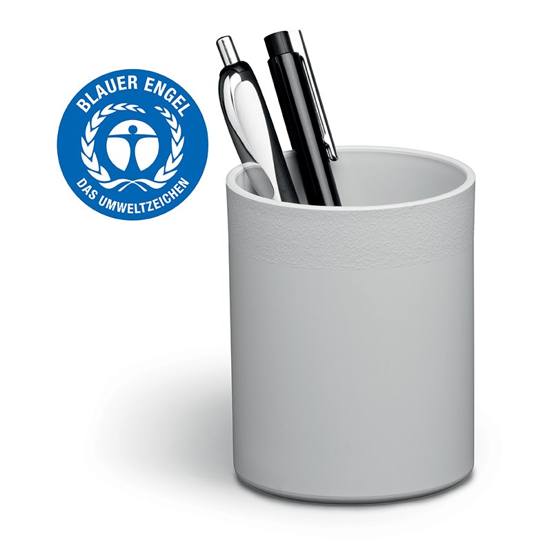 Kvalitetna eko čaša za olovke napravljena od reciklirane plastike s Blue Angel oznakom. Veliki volumen. Dimenzije: Ø 80 mm, visina 100 mm
