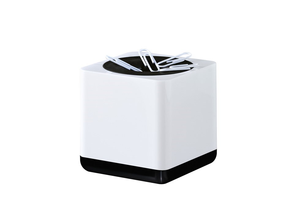 Elegantna kutija za spajalice velikog kapaciteta. Prstenasti magnet drži spajalice. Jednostavno punjenje. Visoka kvaliteta, stabilna i teška izvedba. Visoki sjaj i jasne linije.