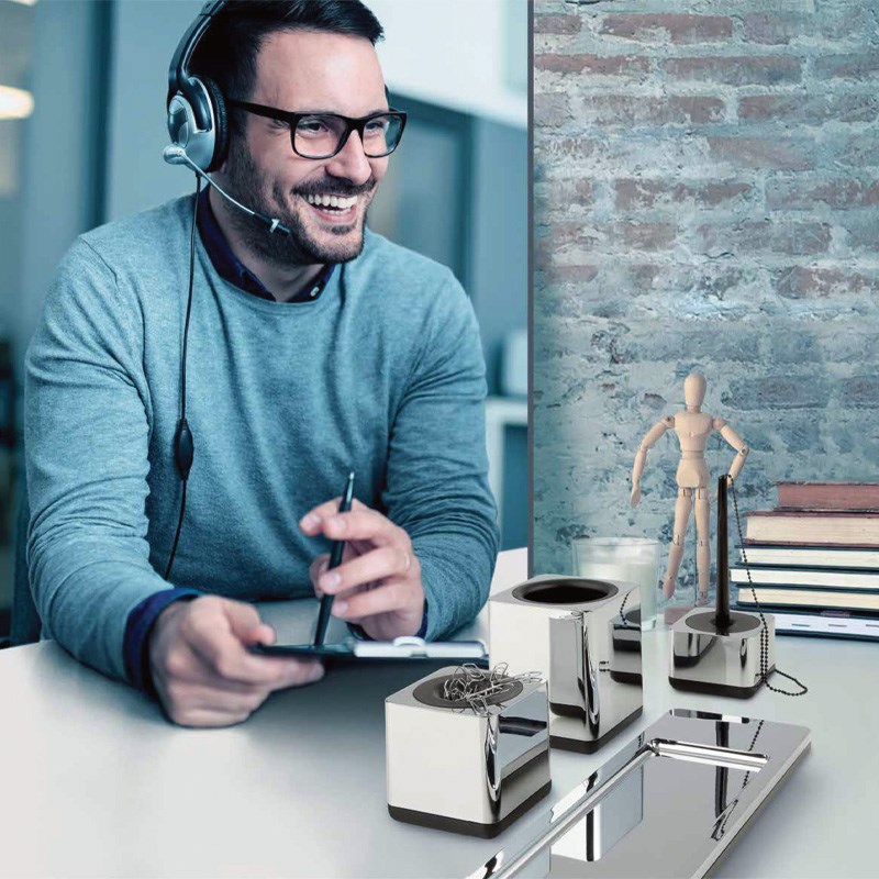 Elegantna kutija za spajalice CHROME velikog kapaciteta. Prstenasti magnet drži spajalice. Jednostavno punjenje. Visoka kvaliteta, stabilna i teška izvedba. Visoki sjaj i jasne linije.