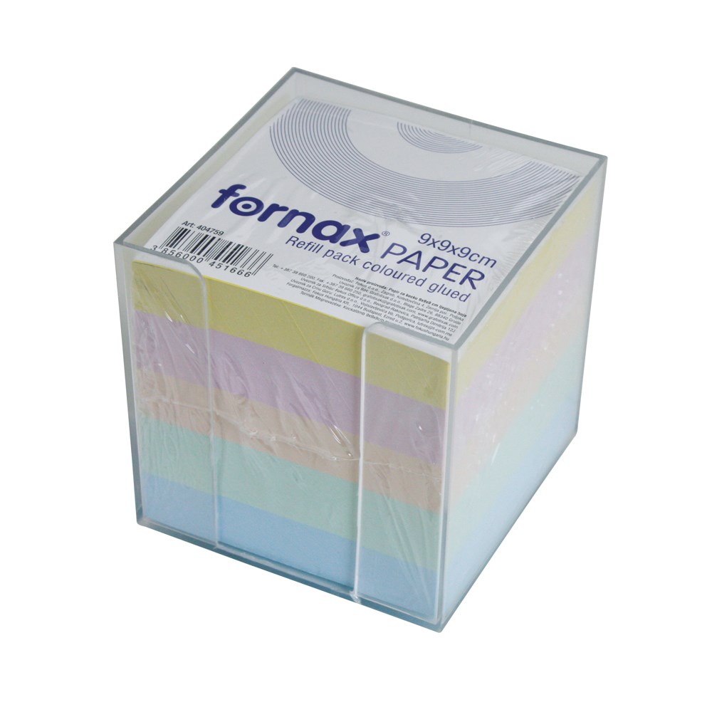 Plastični stalak u obliku kocke s papirićima 9x9x9 cm.