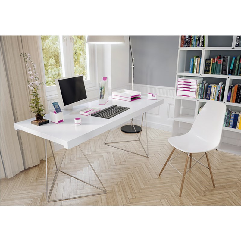 Stolni organizer Leitz WOW dolazi u upečatljivim i modernim dvostrukim bojama sa sjajnim završnim slojem. Modernog je i suvremenog dizajna koji će izgledati sjajno kod kuće i u uredu. Idealan je za pohranu olovaka, spajalica i ostalih svakodnevnih sitnica na vašem radnom stolu.