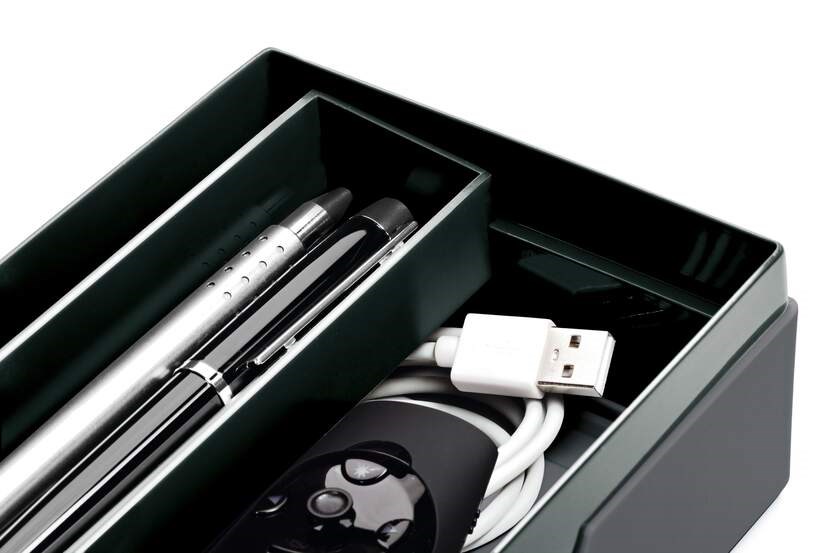 Inovativna mobilna kutija za maksimalnu fleksibilnost i organizaciju. Ergonomski i funkcionalni. Pogodna za uporabu na radnom mjestu i za prijevoz. Mobilne pregrade. Za spremanje sitnog pribora, kao što su kabeli za punjenje za tablet računala i mobiteli, utikači, laserski pokazivači, olovke, tekstualne oznake, SD kartice, itd. Ne klizajuća podloga.