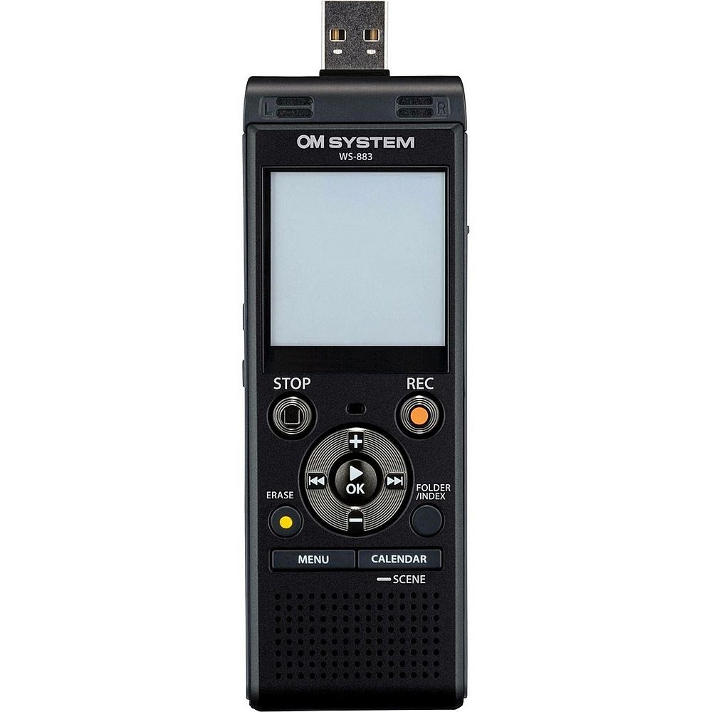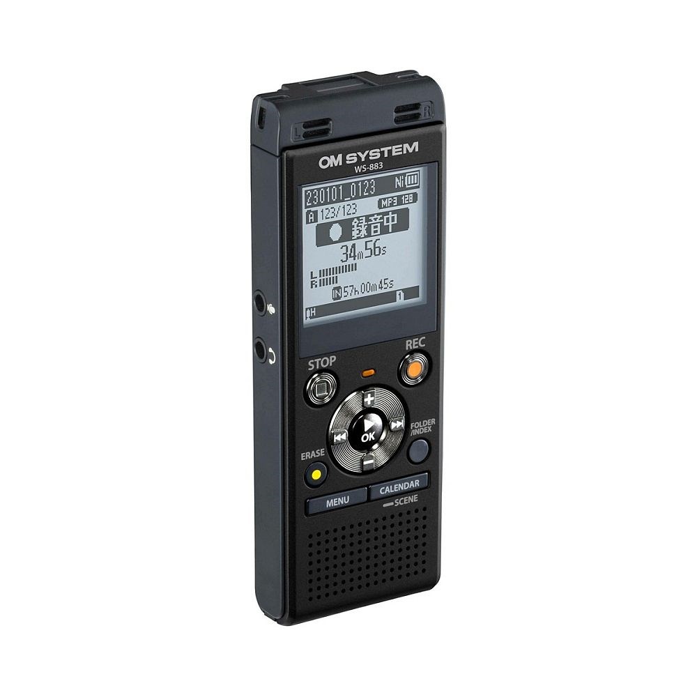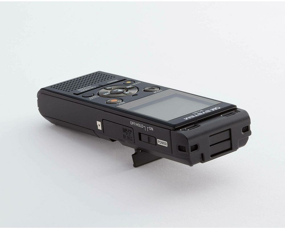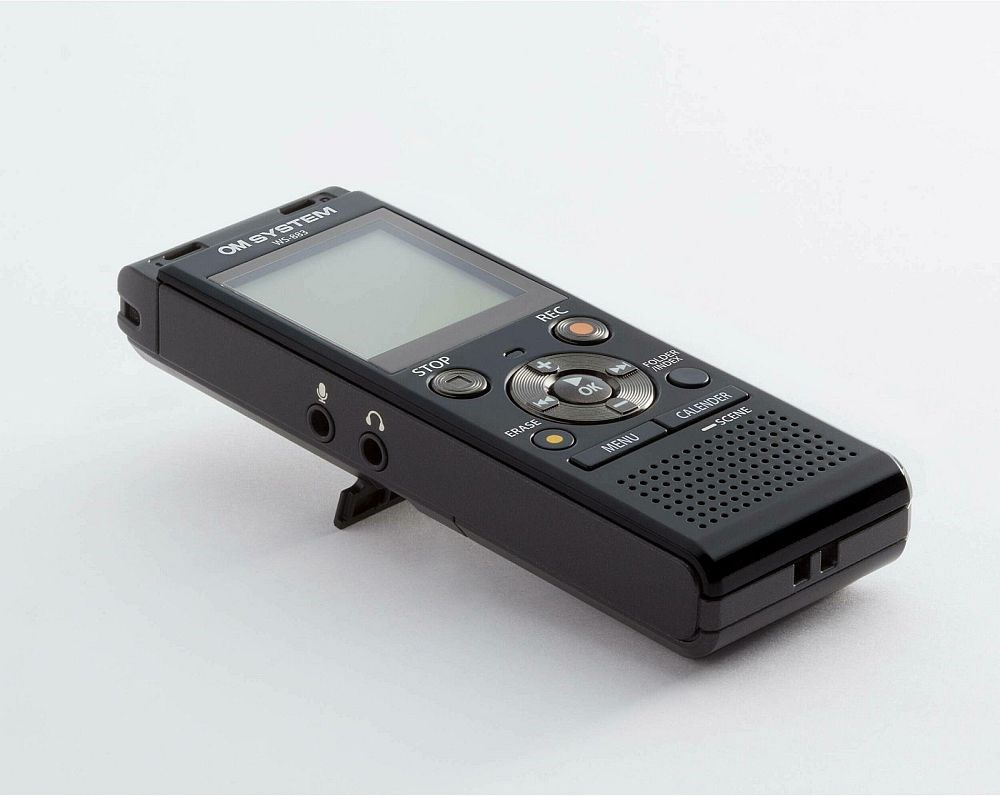 Digitalni snimač WS‑853 s dva usmjerena mikrofona postavljena pod kutom od 90 stupnjeva za snimanje stereo zvuka u njegovu internu memoriju od 8 GB.