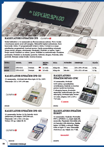 12 znamenaka, LCD ekran, odabir ekran/ispis, brzina ispisa 1,6 l/s, automatsko isključivanje, baterije 4xAA (uključeno) ili adapter 220V/300mA