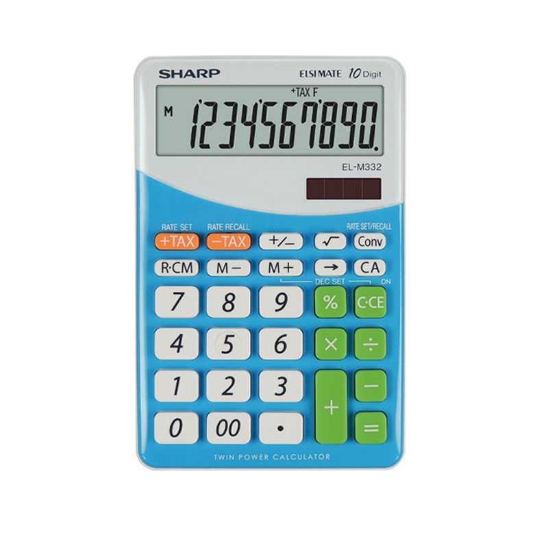 Stolni kalkulator s velikim nagibnim zaslonom s 10 znamenki. Funkcije: pretvorba PDV-a (TAX+/-), pretvorba valuta, %, korijen, postavljanje broja decimalnih mjesta, tipka za ispravak unosa. Način rada (napajanje): baterija + solar. Baterija: CR2032.