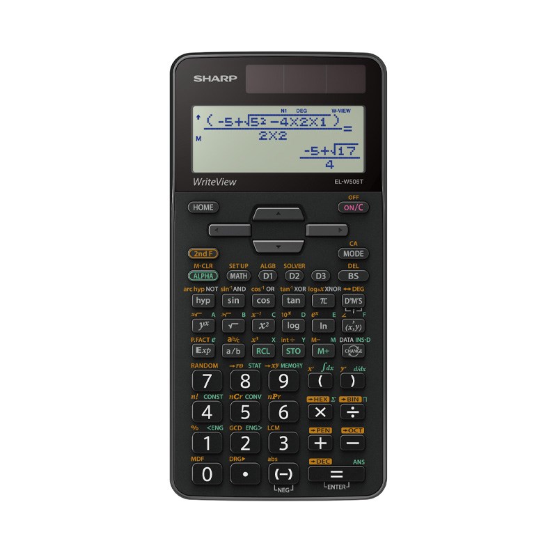 Tehnički kalkulator SHARP sa 640 naprednih znanstvenih funkcija. Veliki matrični zaslon s 4 retka od 96 x 32 znaka koji prikazuje jednadžbu točno onako kako je napisana u knjizi (Write-View). Ekranzaštićen akrilnom pločicom koja poboljšava kontrast ekrana i ujedno pruža dodatnu zaštitu. Prikaz rezultata kao razlomka, iracionalnog ili decimalnog može se jednostavno promijeniti pritiskom na tipku 1. Uz to, kalkulator nudi 9 neovisnih memorija, statističku analizu, funkciju slučajnog odabira, 3 programibilne tipke za najčešće korištene funkcije, "Drill" način učenja. Funkcija Multi-Line Playback osigurava da korisnici pregledaju unesene znanstvene jednadžbe te ih lakše i točnije rješavaju. Kalkulator ima izdržljive plastične tipke, a čvrsti klizni poklopac štiti kalkulator od oštećenja. Ako se kalkulator ne koristi dulje vrijeme, sam se isključuje. Baterija: 1 x LR44.