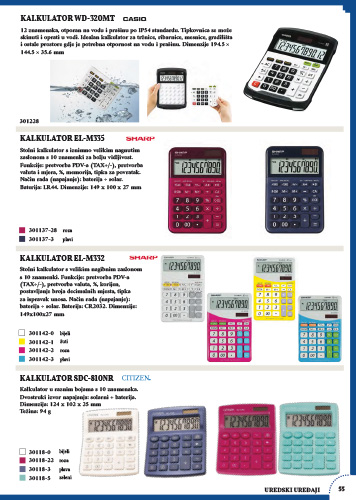 Otporan na vodu i prašinu po IP54 standardu. Tipkovnica se može skinuti i oprati u vodi. Idealan kalkulator za tržnice, ribarnice, mesnice, gradilišta i ostale prostore gdje je potrebna otpornost na vodu i prašinu.