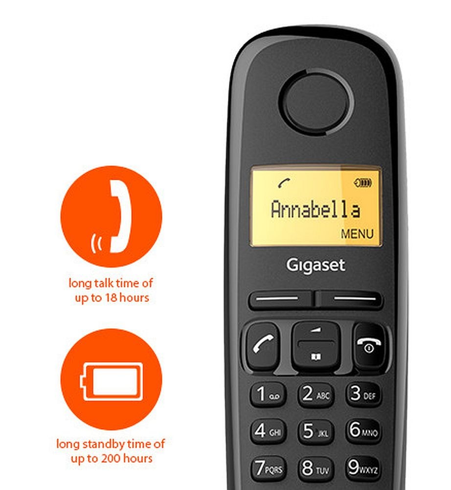 DECT bežični telefon s mogućnost priključenja do 4 slušalice na jednu bazu kojeg krase vrhunske karakteristike. Podesiva glasnoća zvuka slušalice (5 razina). Kompatibilno sa slušnim aparatima. Programibilne tipke (tipke 2 - 9) za direktne pozive