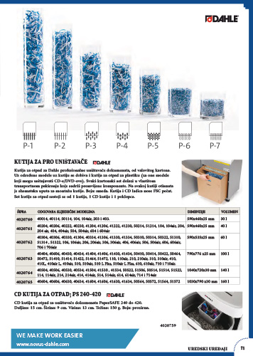 Odgovara modelima Kutija za otpad za Dahle pro uništavače 160 l; 40604, 40606, 40630, 40634, 41604, 41606, 41630, 41634, 50564, 50572, 51564, 51572
