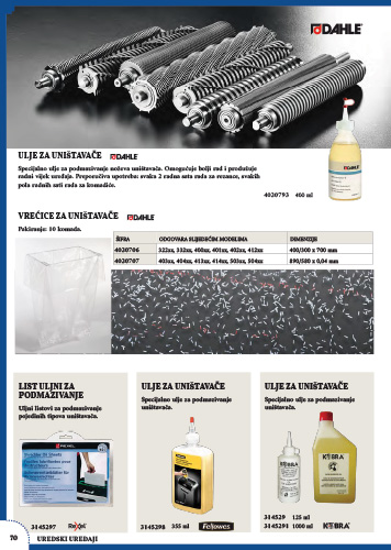 Uljni listovi za podmazivanje pojedinih tipova uništavača.