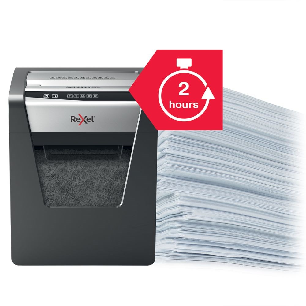 Rexel Momentum X415 je idealan uništavač za male uredske uporabe. Uništava do 15 listova odjednom i radi neprekidno 2 sata.