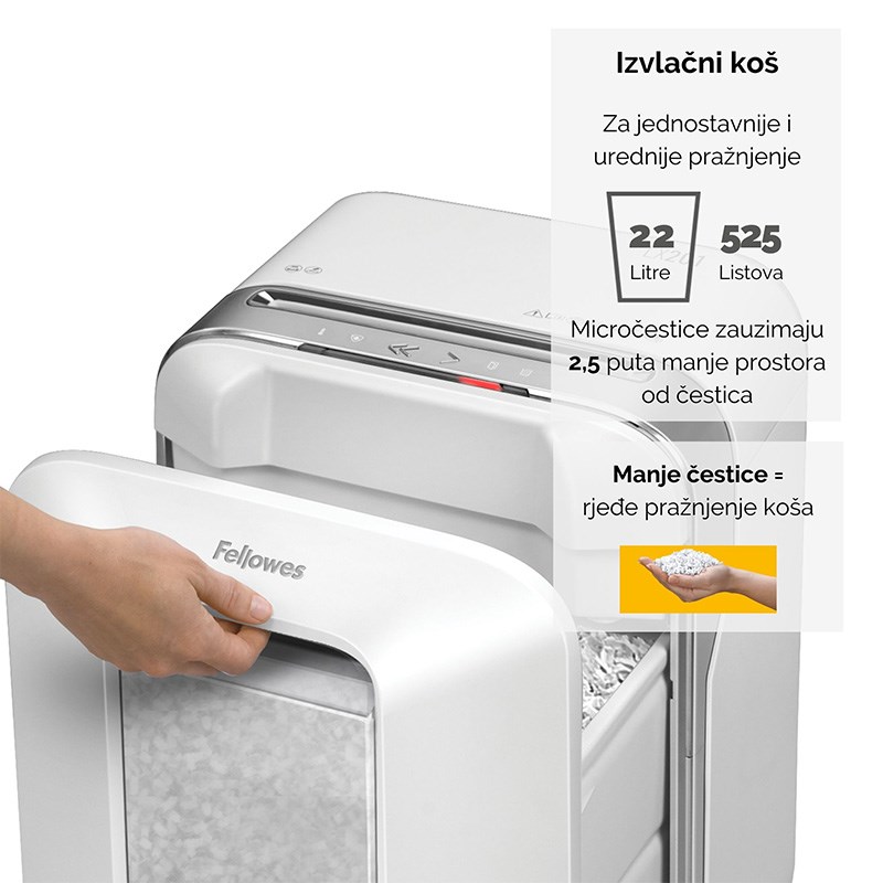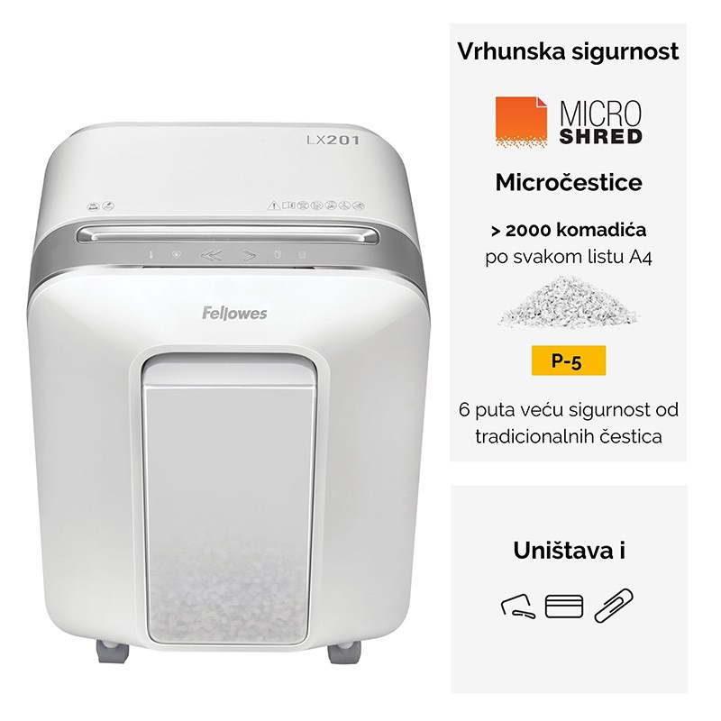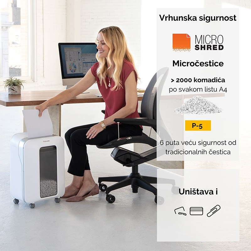 Uništava istovremeno do 12 listova na Micro-Cut od 2 x 12 mm (sigurnosna razina DIN P-5)
