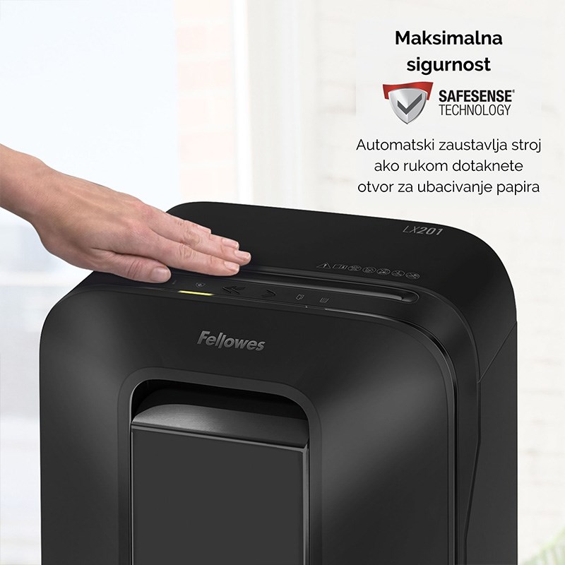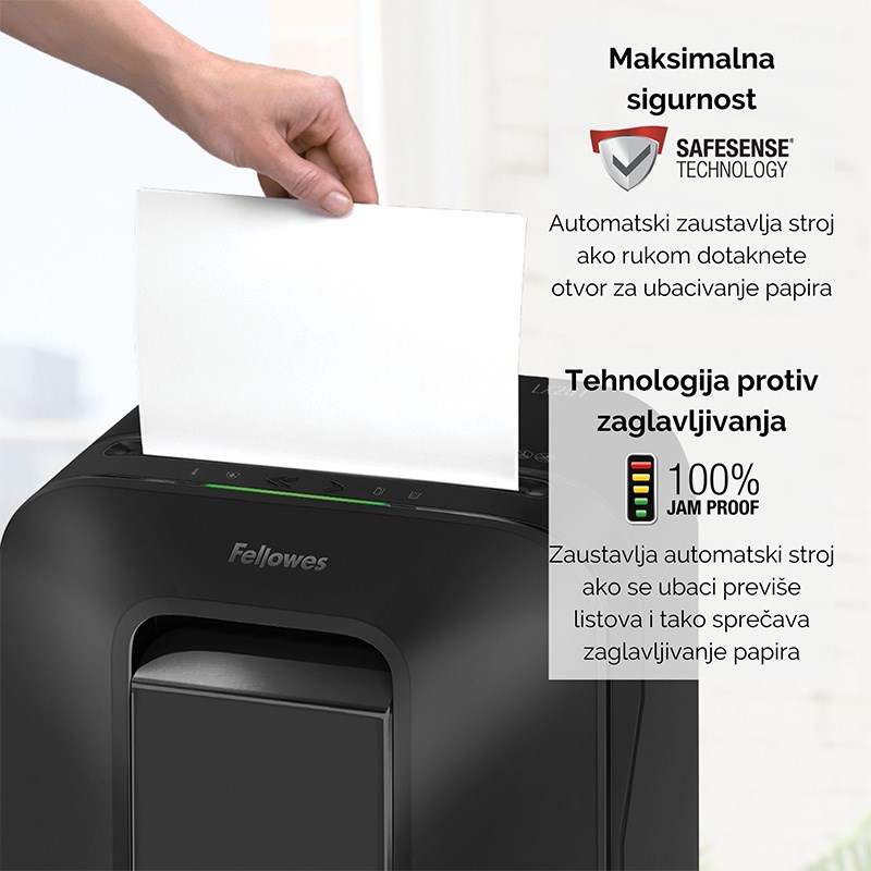 Tehnologija Safesense zaustavlja rad uništavača čim se rukom dotakne otvor za papir