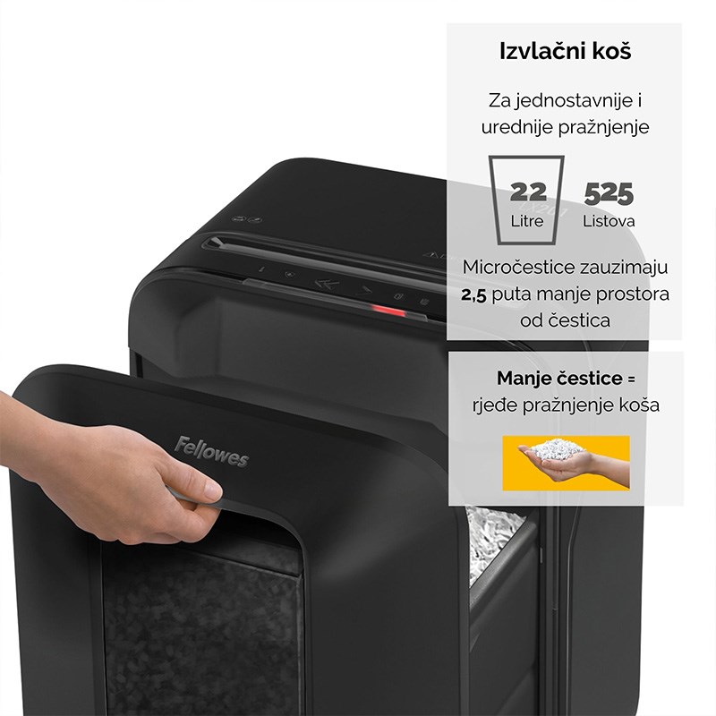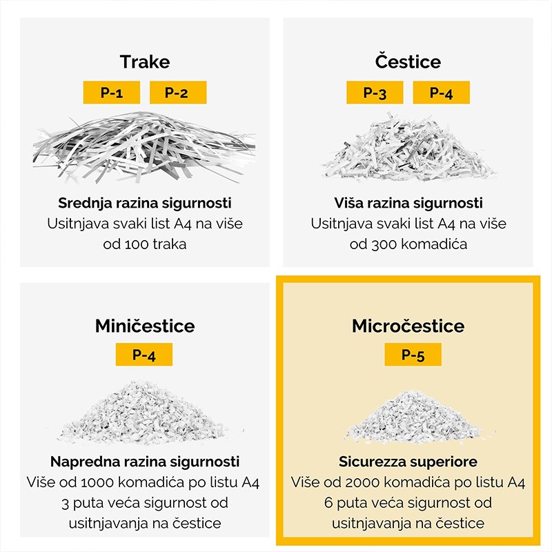 Uništava istovremeno do 12 listova na Micro-Cut od 2 x 12 mm (sigurnosna razina DIN P-5)