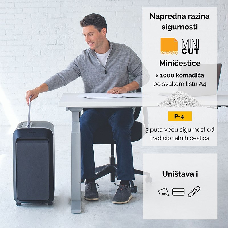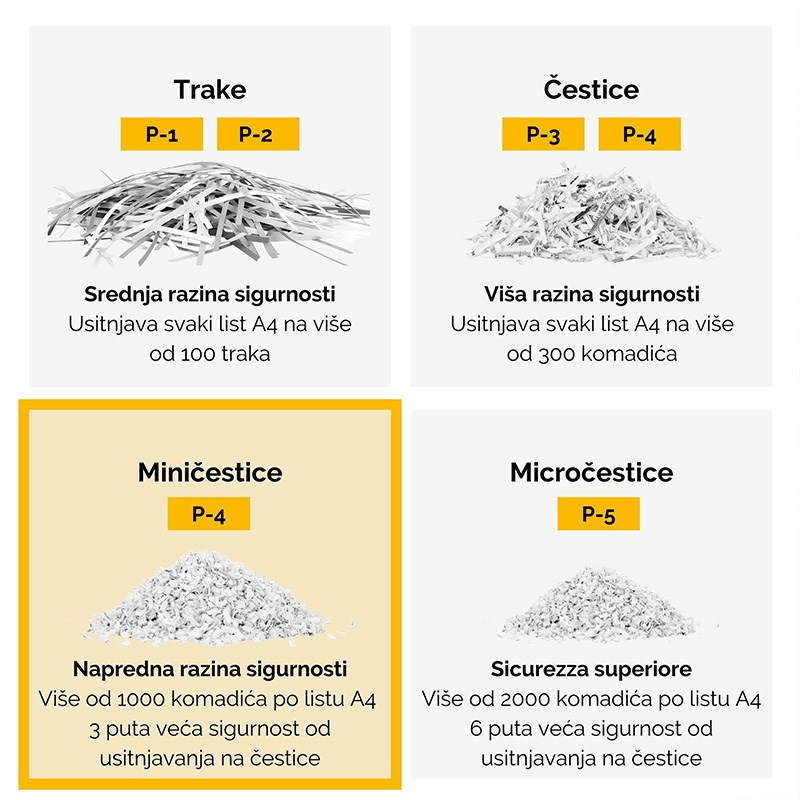 Uništava istovremeno do 20 listova na Mini-Cut od 4 x 12 mm (sigurnosna razina DIN P-4)