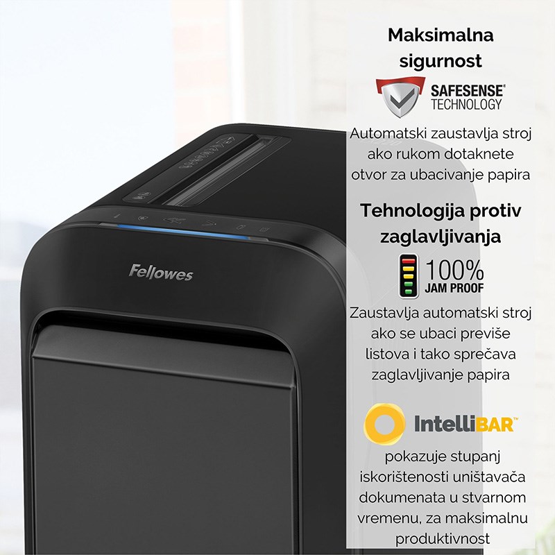 Tehnologija Safesense zaustavlja rad uništavača čim se rukom dotakne otvor za papir