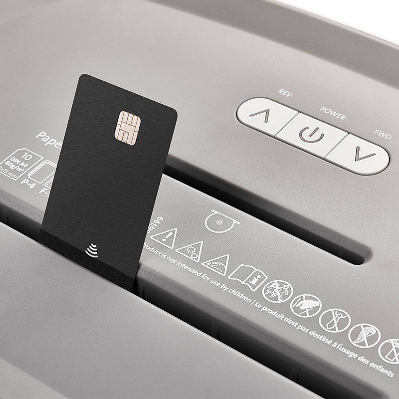 Osobni uništavač dokumenata za urede s izvlačenjem ladice koša prilikom pražnjenja.