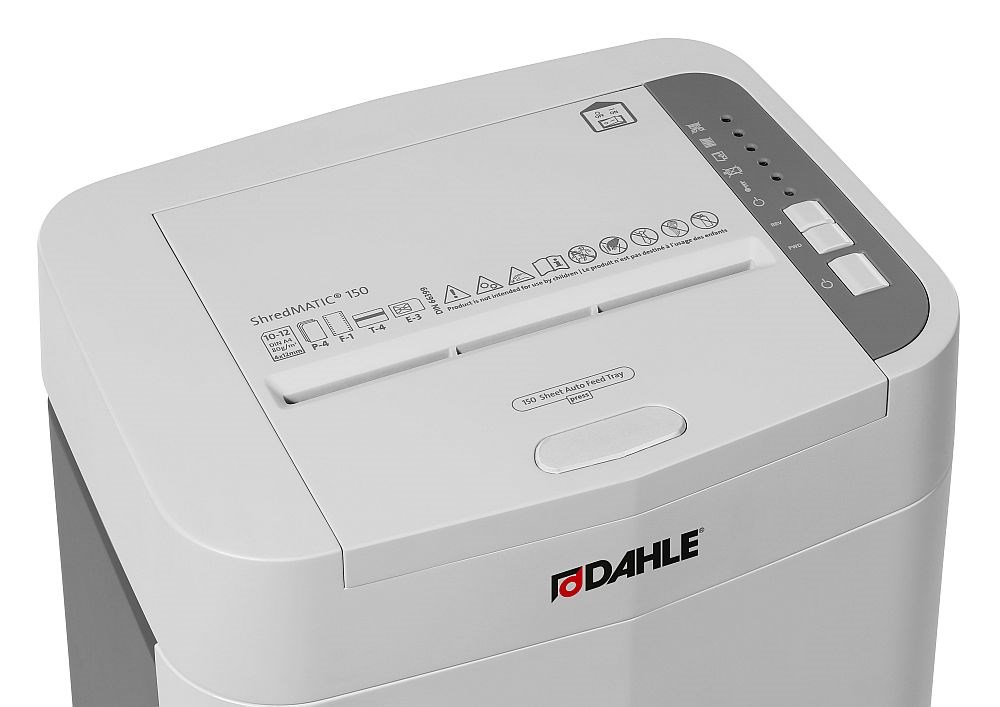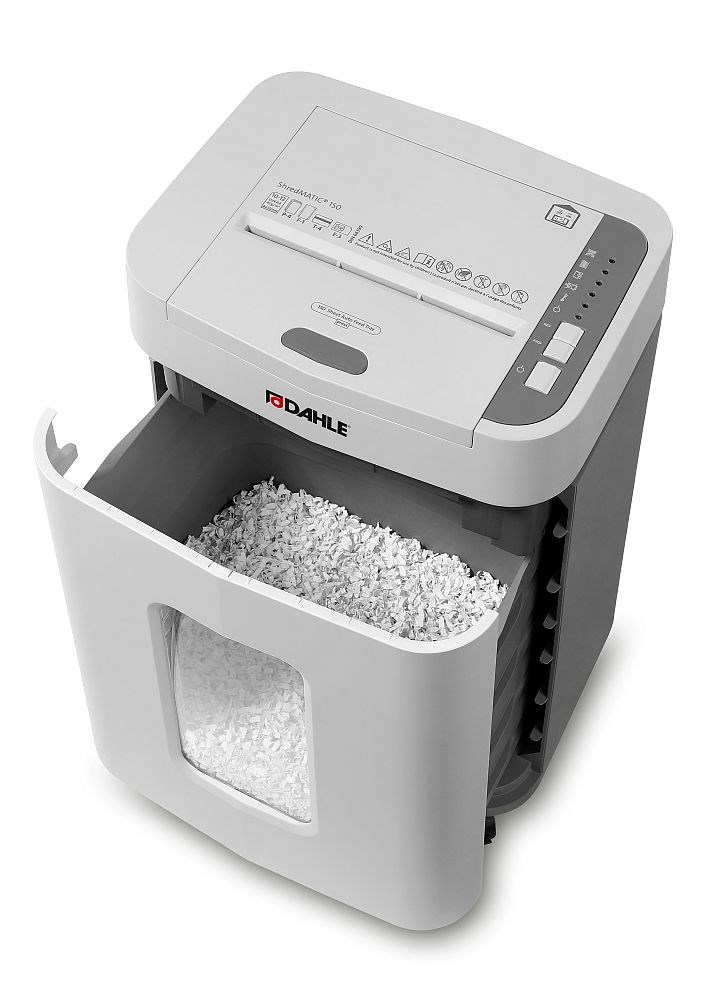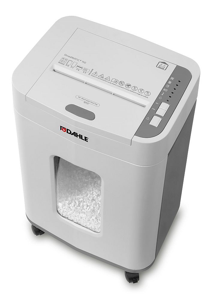 Osobni uništavač dokumenata s automatskim dodavačem do 150 listova, na kotačićima, za male i kućne urede s izvlačenjem ladice za pražnjenje košare.