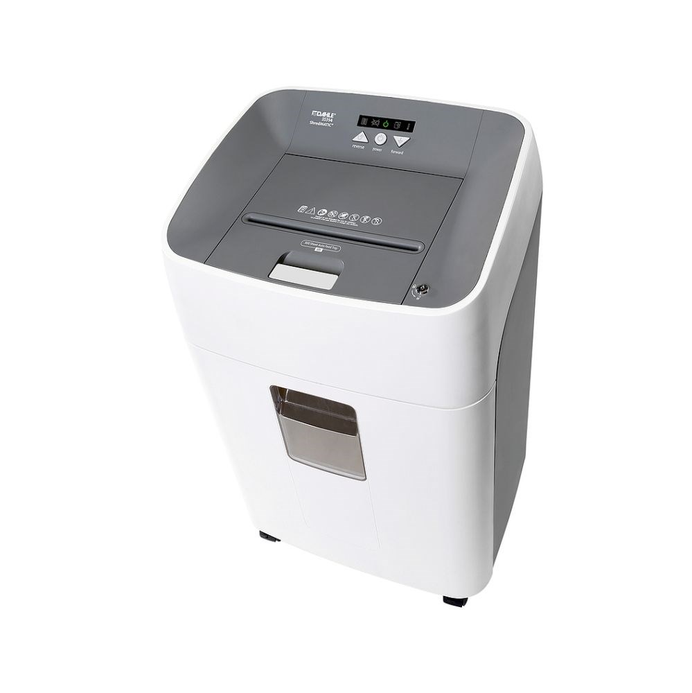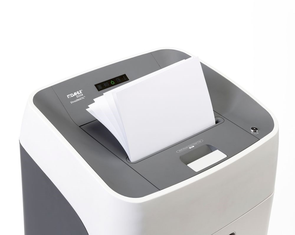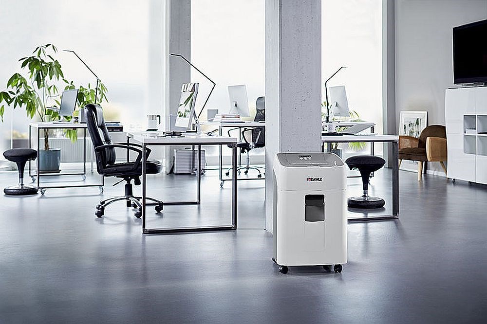 Uredski uništavač koji posjeduje snažan, posebno tih, motor za visoki kapacitet usitnjavanja. "Oilfree" (uništavanje dokumenata bez uljenja noževa) s automatskim dodavačem do 300 listova, na kotačićima, s izvlačenjem ladice za pražnjenje košare. papira u jednom prolazu ili 300 listova iz automatskog dodavača, rez 4 x 15mm, pri čemu u koš od 40 litara stane do 1200 listova A4.